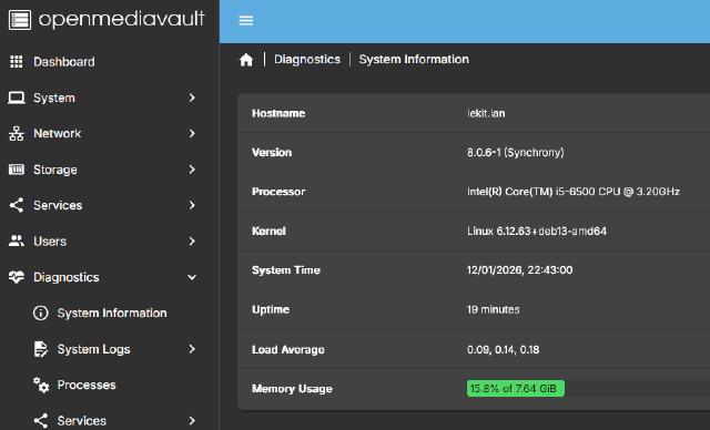 Sto correntemente gestendo due istanze di openmediavault aka OMV, un sistema operativo per NAS con diverse funzionalità ma anche piuttosto leggero, considerato che è poco più di una installazione Debian con una web GUI che permette di controllarlo da cima a fondo ma che sa mettersi da parte quando serve alzare il cofano e ritoccare più in dettaglio ogni cosa.